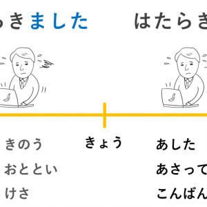 今日は「時間、曜日」の言い方、助詞の「から」(起点)と「まで」(着点)の導入です。