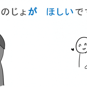 まず、動詞(ます形)を使用する場合は、目的語(例文の場合は「日本語」)は「を」がつくことを確認します。